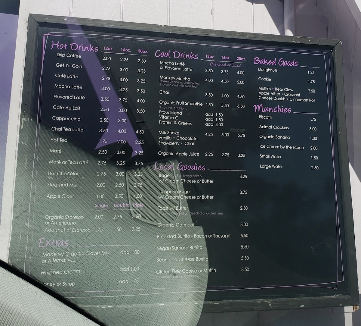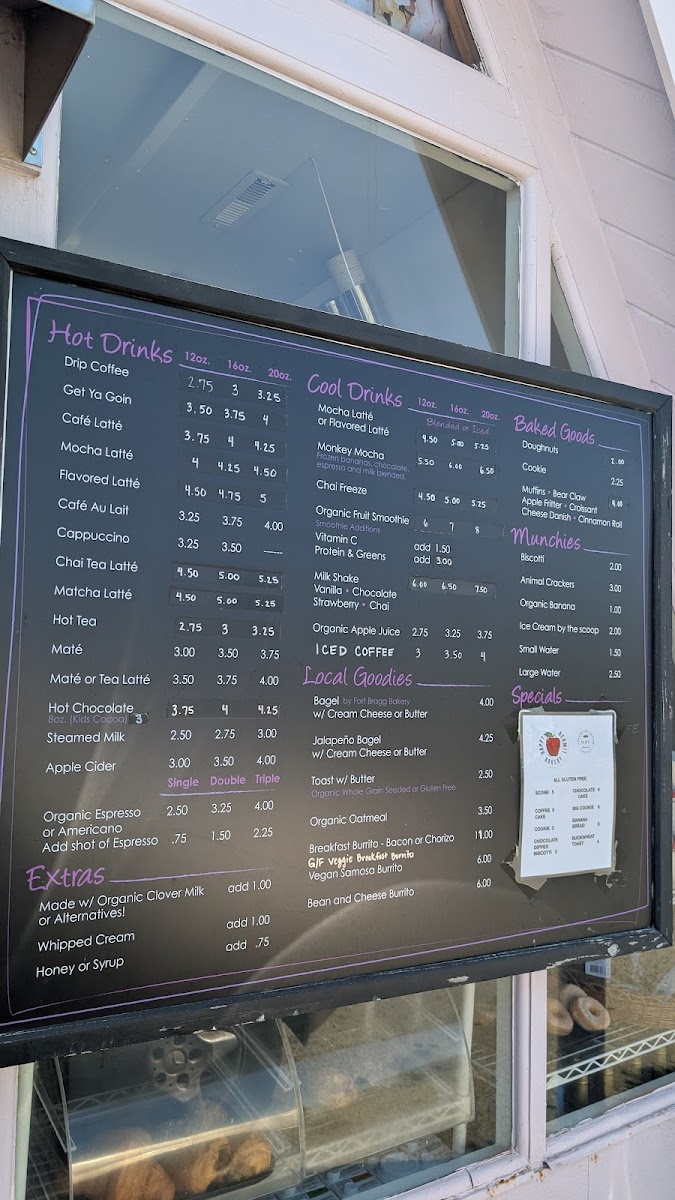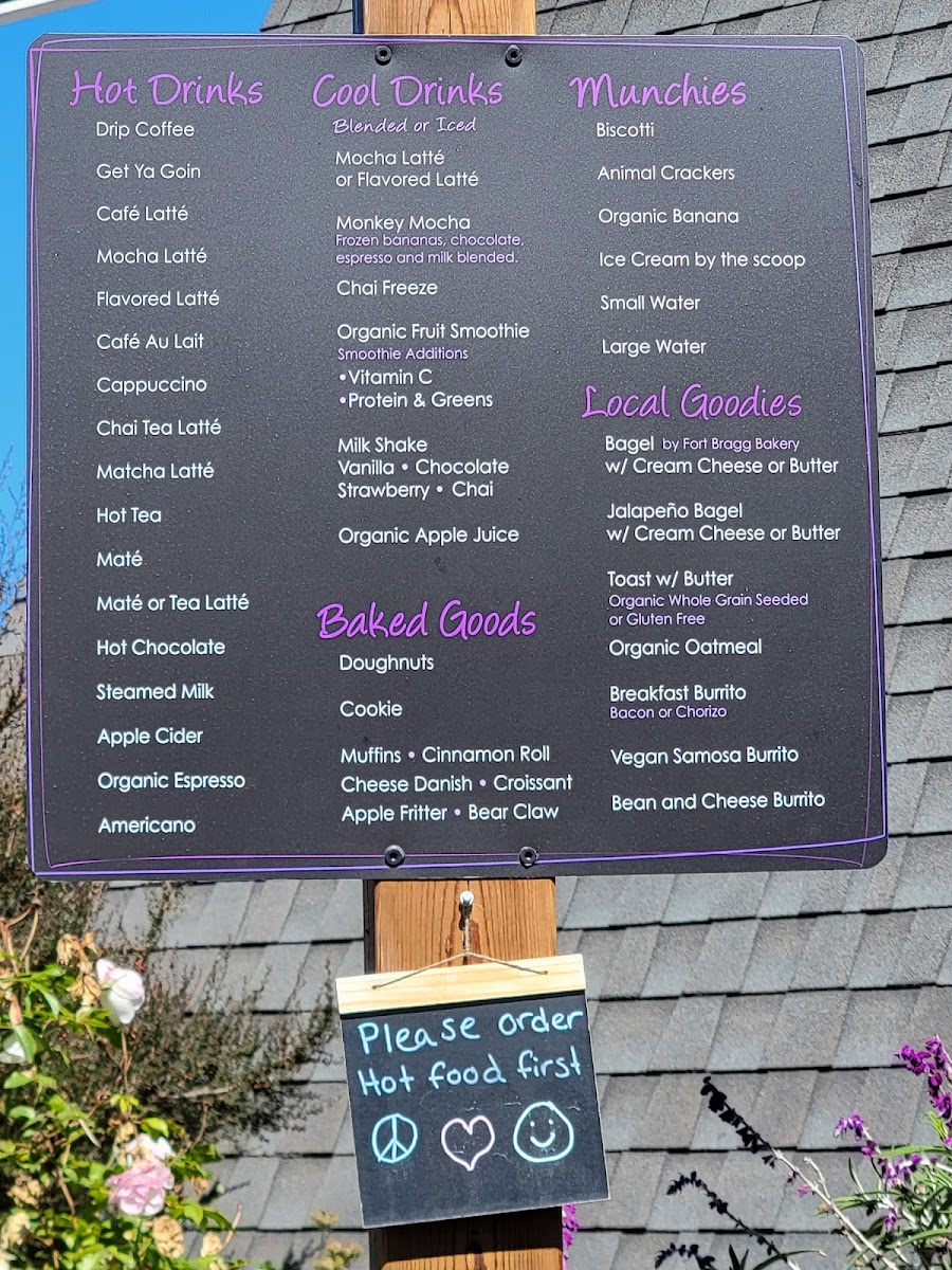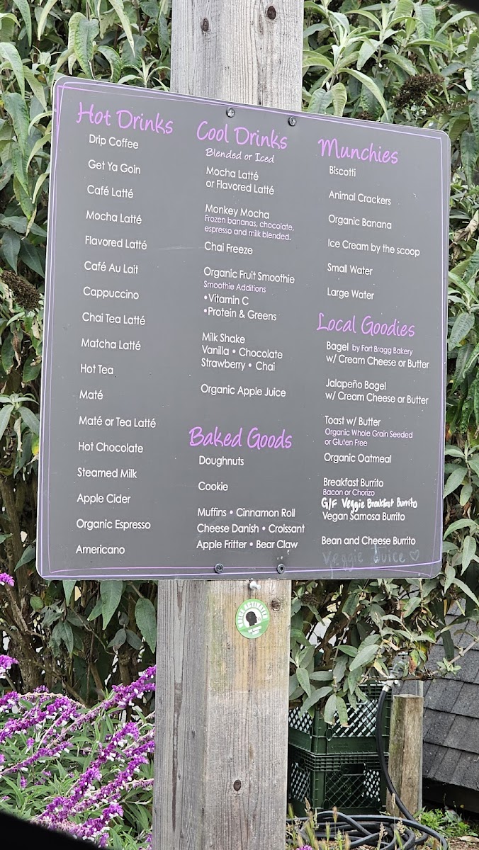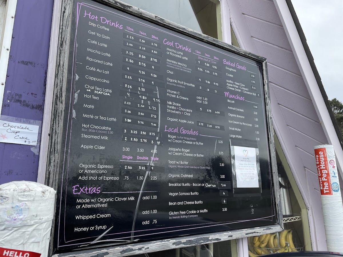 At A Frame Espresso in Fort Bragg, the menu offers a delightful range of beverages and snacks that cater to all tastes, from classic hot drinks to refreshing cool treats and freshly baked goods. For coffee lovers, the Drip Coffee is an essential choice, while the Get Ya Goin provides a more robust flavor to kickstart your day. Those craving a creamier experience can opt for a Café Latté or a Mocha Latté. For those who enjoy a twist, the Flavored Latté offers variety, adding a fun and personalized flair to your coffee routine.